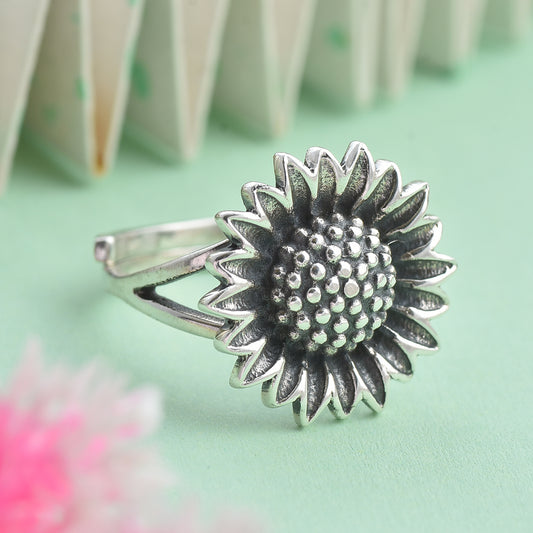 Silver sun flower ring
