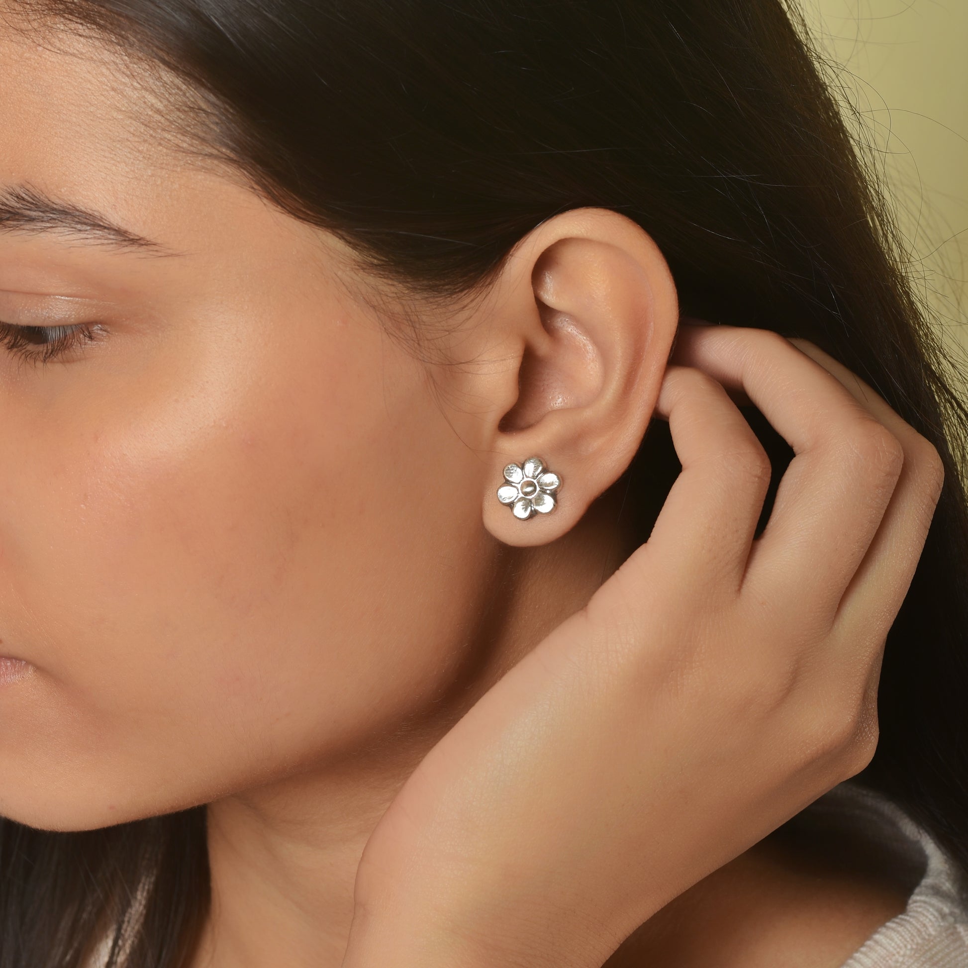 Simple yet stunning, our Silver Flower Stud Earrings are handmade to perfection. Featuring a sleek floral design in pure 925 Sterling silver, they add just the right sparkle to your day. Whether you're dressing up or down, these versatile studs bring a clean, modern charm that never goes out of style.