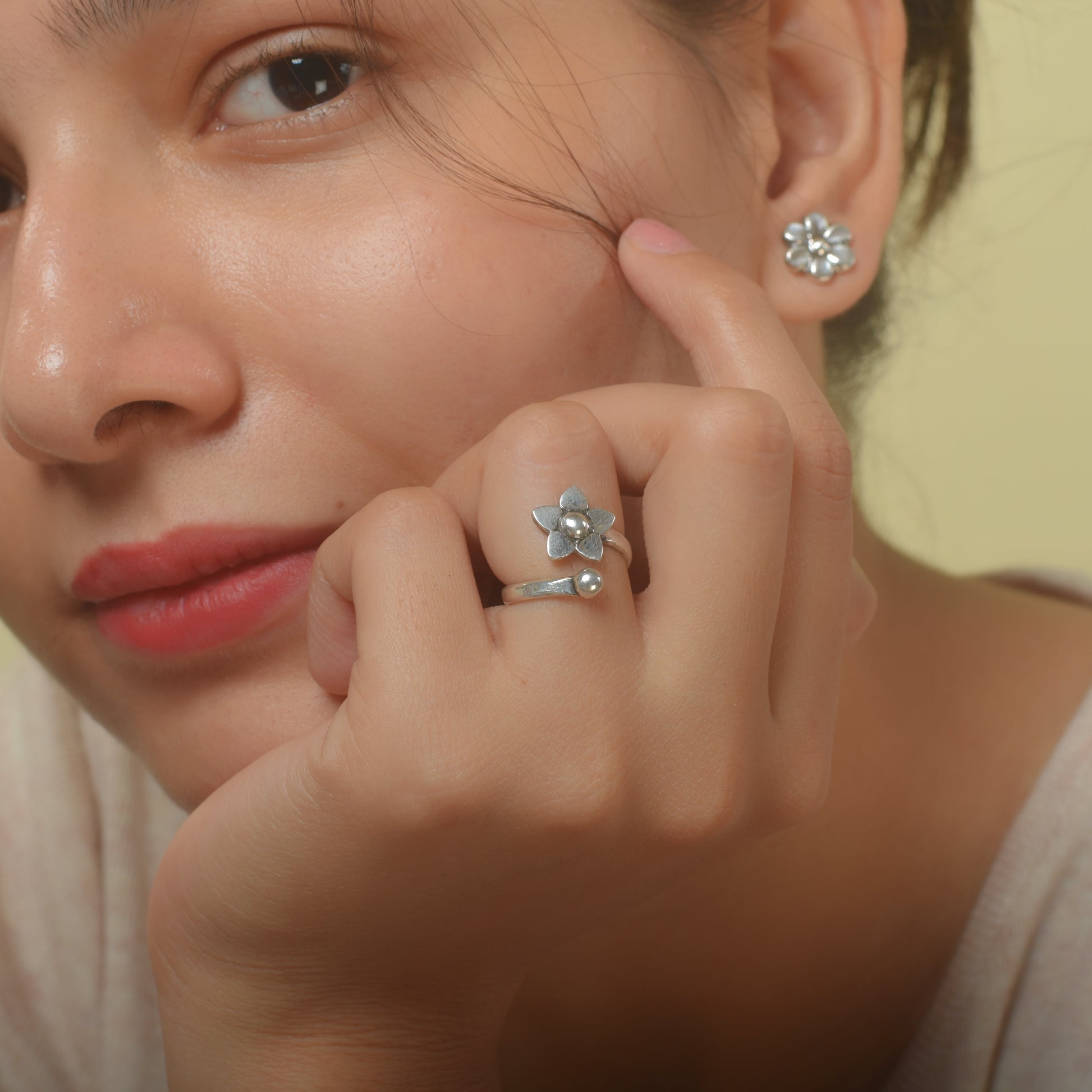 Add a touch of elegance to your everyday look with this Dazzling Silver Flower Ring. Beautifully handmade by skilled artisans, it features a delicate flower design crafted in pure silver. Lightweight and timeless, it’s perfect for both casual and festive wear. A graceful choice for anyone who loves minimal yet charming jewelry.