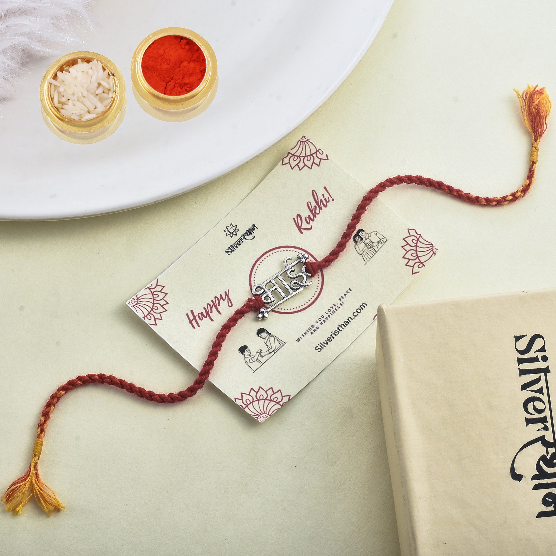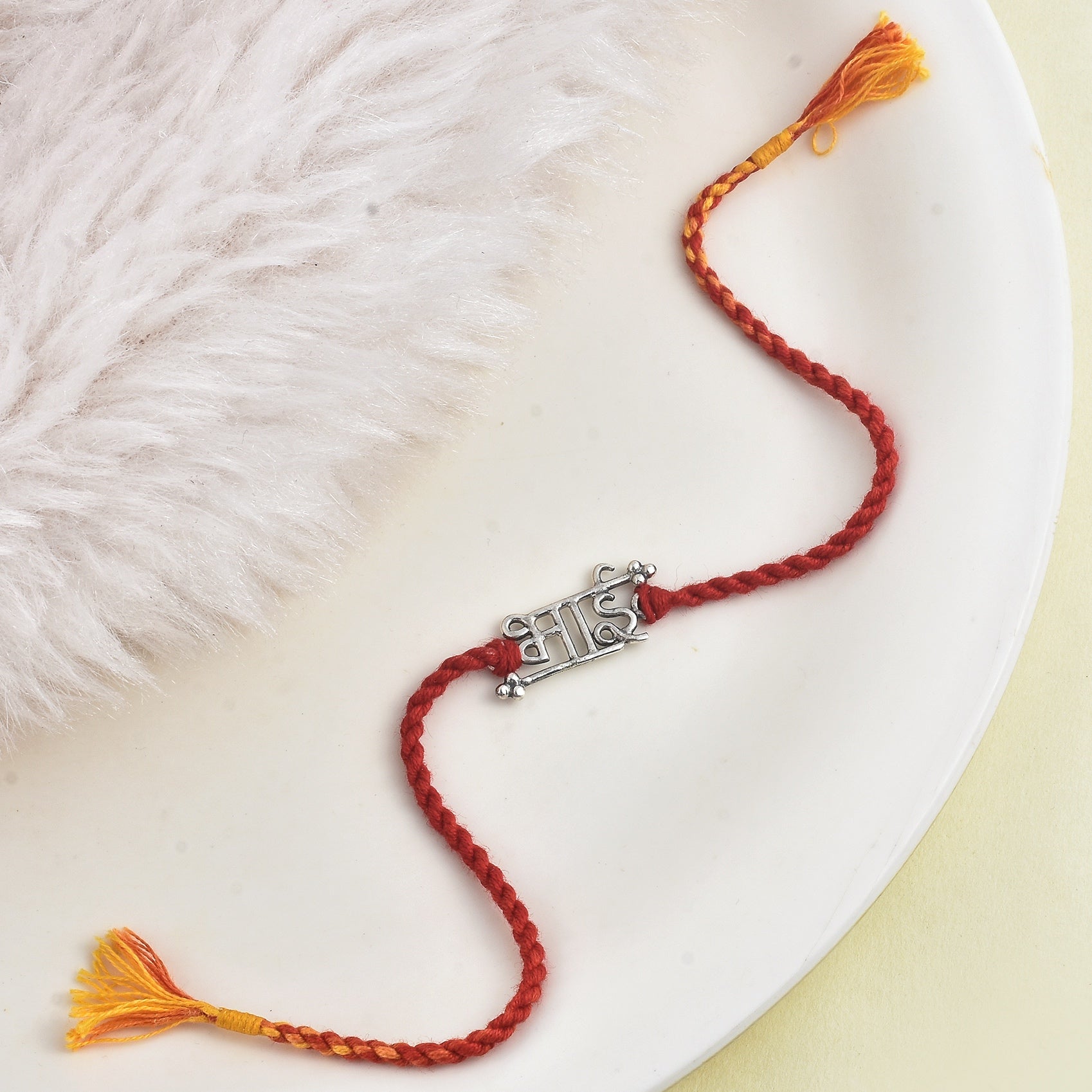 The Silver Bhai Rakhi is the ideal symbol of love and respect to give on Raksha Bandhan. This Rakhi is made of pure silver and has the word "Bhai" arranged in a classy fashion. It's a meaningful approach to show your brother how much you care and to deepen your relationship with him. It's sturdy and lightweight.