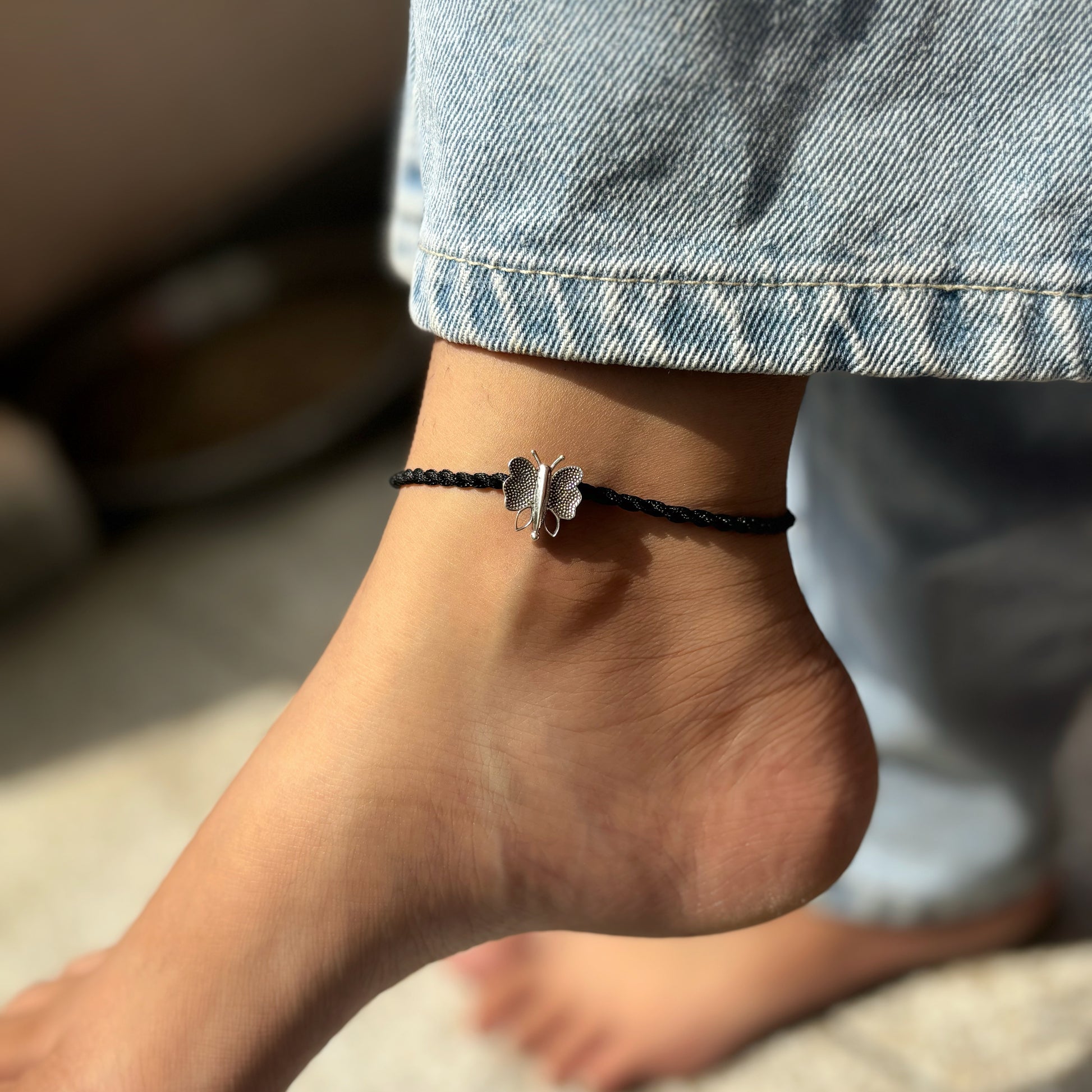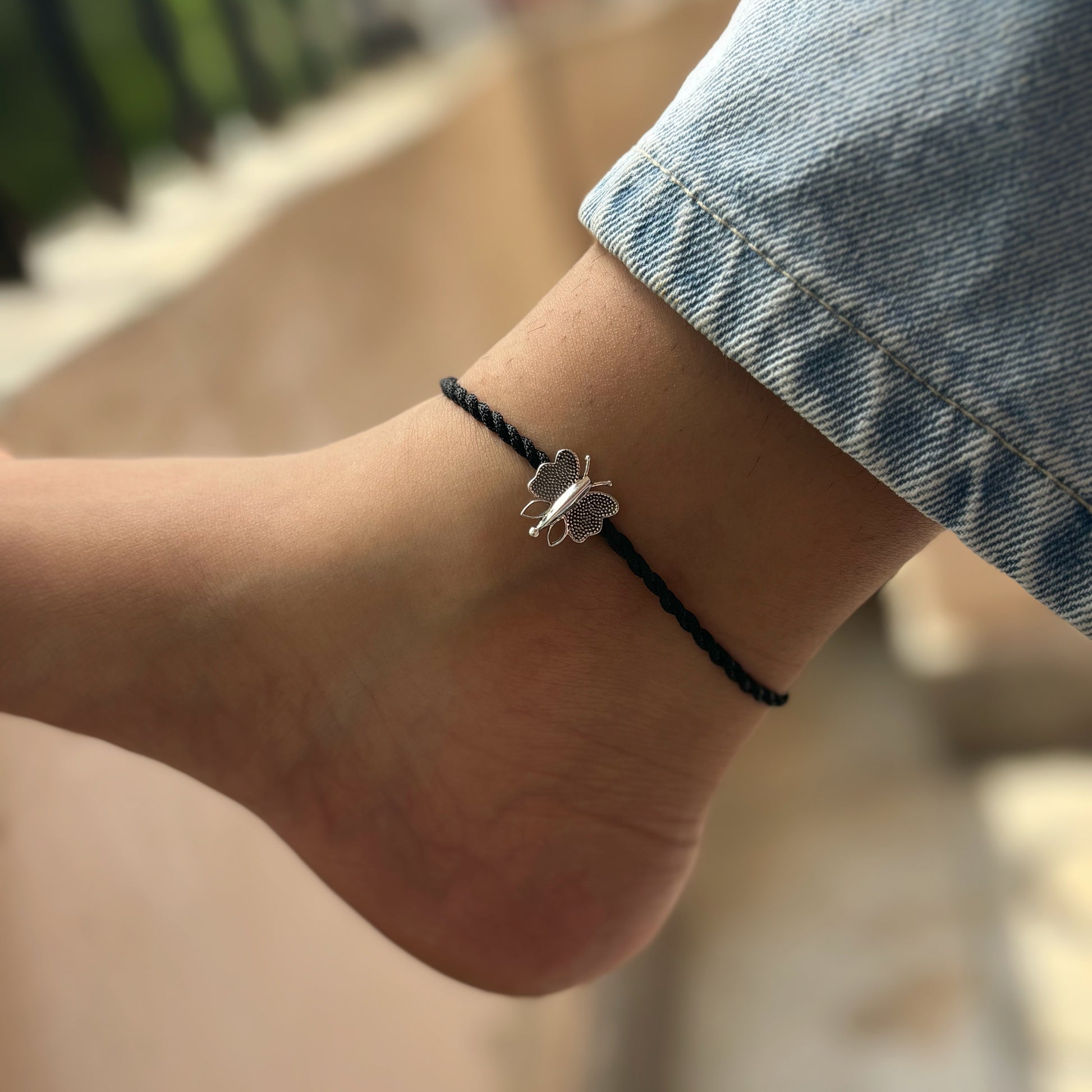 The Silver Butterfly Nazarbattu Anklet is the ideal accessory to adorn your ankle, combining heritage and beauty. This anklet is made of sterling silver and has a lovely butterfly and Nazarbattu motif, which is thought to fend off evil. It's a fashionable and lightweight piece of jewellery that gives your outfit a dash of elegance and security for everyday use.