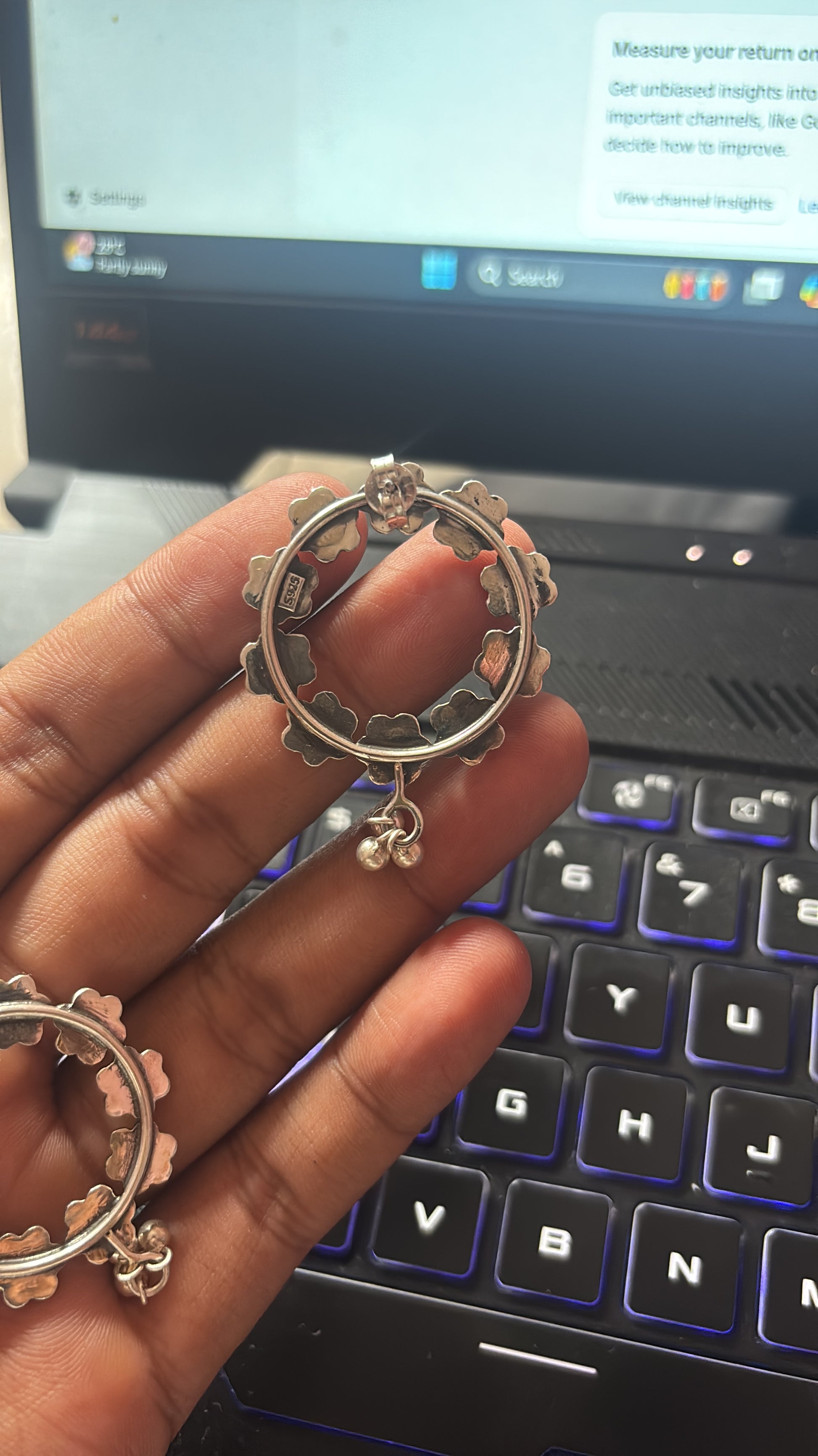 Silveristhan brings you the enchanting Silver Daisy Flower Bouquets Earrings With Bells, beautifully handmade in pure 925 sterling silver. Featuring delicate daisy flower patterns arranged like a bouquet, these earrings are paired with tiny bells that create a soft tinkling sound. Lightweight and comfortable to wear, they are perfect for festive occasions as well as everyday elegance. A timeless piece that reflects artistry, tradition, and charm in every detail.