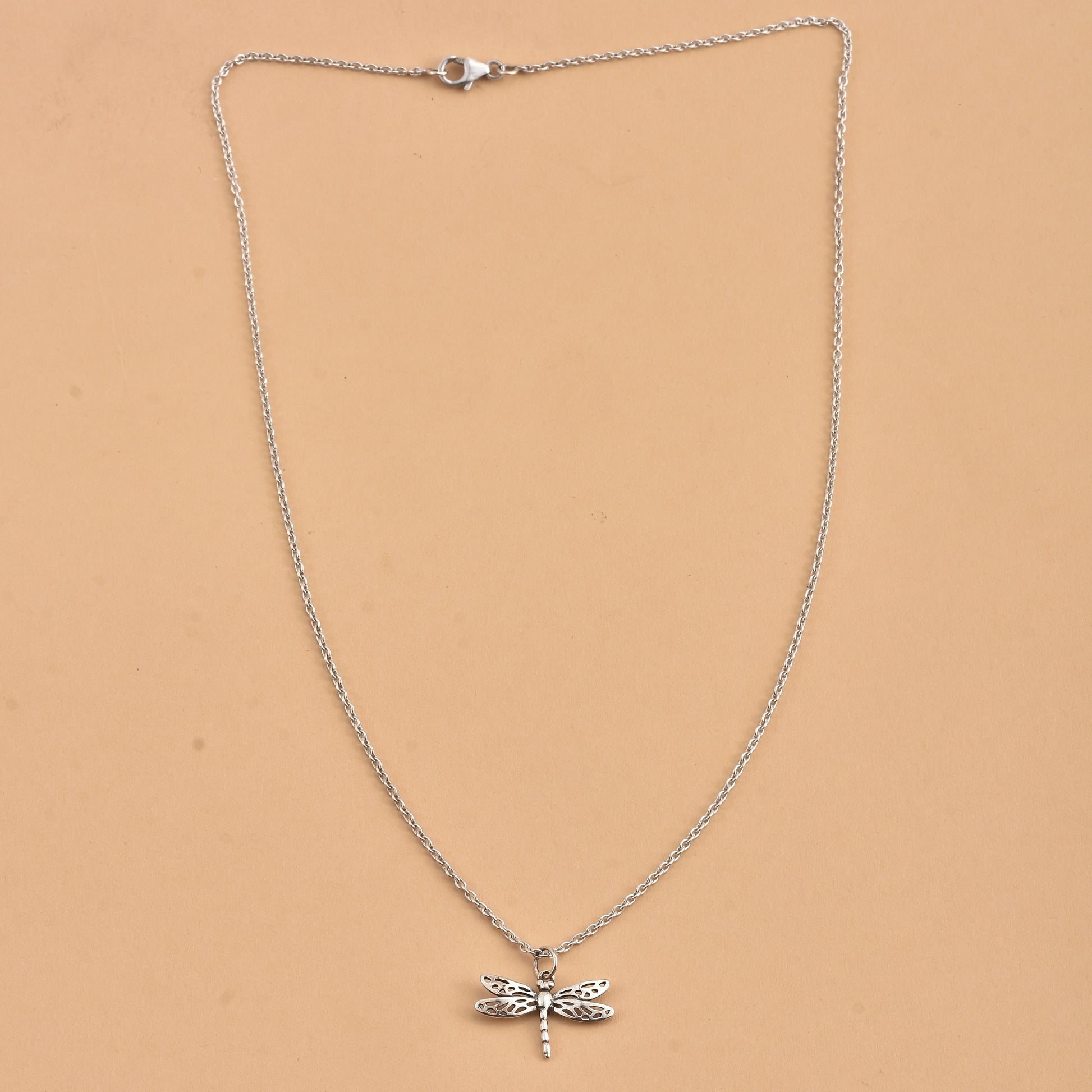The Silver Dragonfly Neckchain from Silveristhan is a handcrafted 925 sterling silver beauty inspired by nature’s charm. The dragonfly pendant stands for freedom, joy, and spiritual transformation. Its sleek, minimal design makes it suitable for everyday wear, adding a soft elegance to any look. Made with care by skilled artisans, this neckchain combines purity, durability, and timeless appeal—perfect for gifting or personal wear.