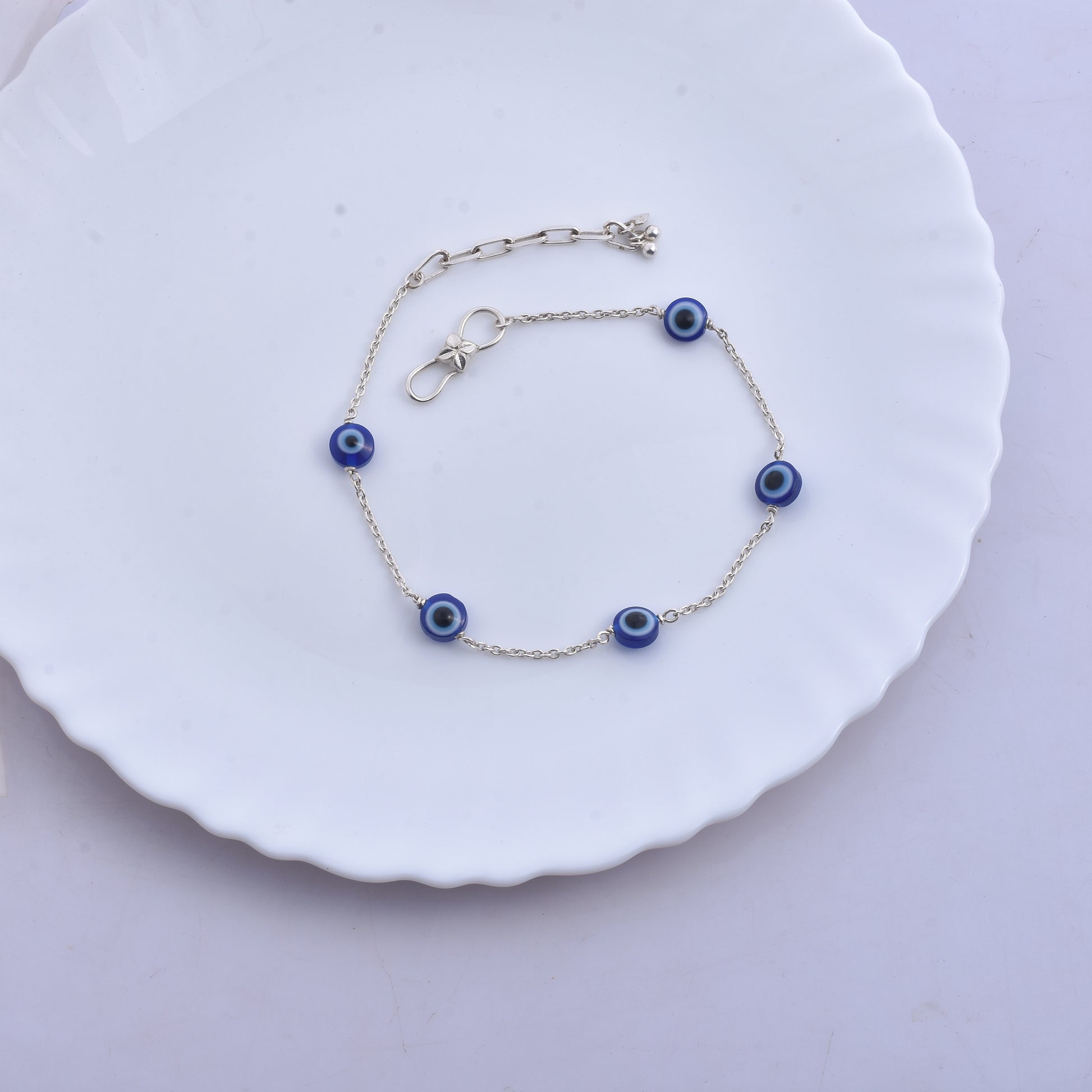 Wear Silveristhan's Silver Evil Eye Beads Anklet to be fashionable and safe. The striking evil eye beads, which are emblematic of protection, adorn this anklet, which is made of pure 925 sterling silver. Crafted by hand with accuracy, it has a distinct charm and is nevertheless lightweight and comfortable enough to wear every day. This anklet is a great option if you want to add some flair to your outfit or are searching for a special piece of jewelry. Everywhere you travel, the handcrafted craftsmanship of Silveristhan's pieces combines beauty, heritage, and happiness.