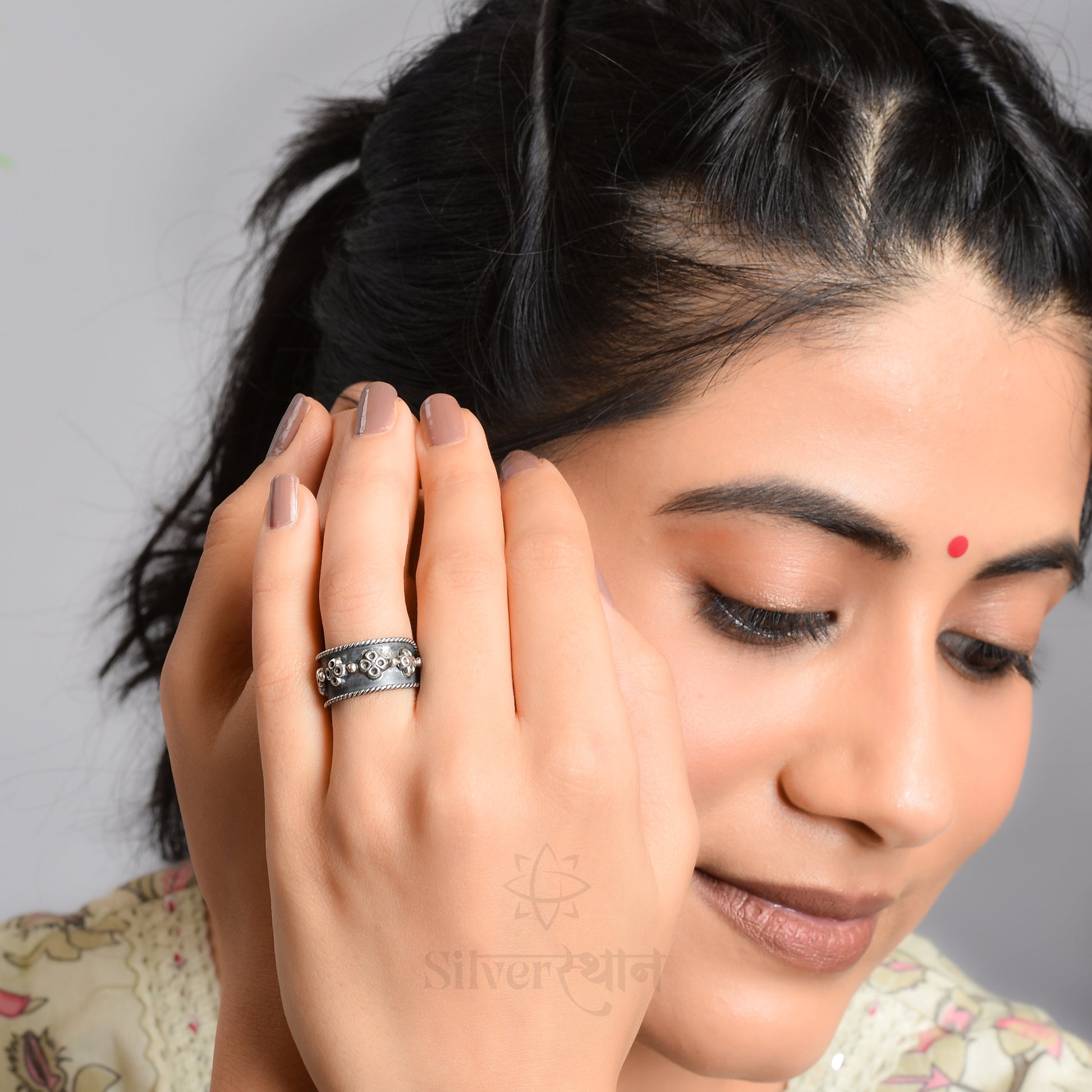 Grace your fingers with our Silver Flower Band Ring. Delicately crafted, it blooms with intricate floral details, celebrating nature's beauty. This elegant ring adds a touch of charm to any look, making it the perfect accessory for those who appreciate timeless and graceful jewelry.