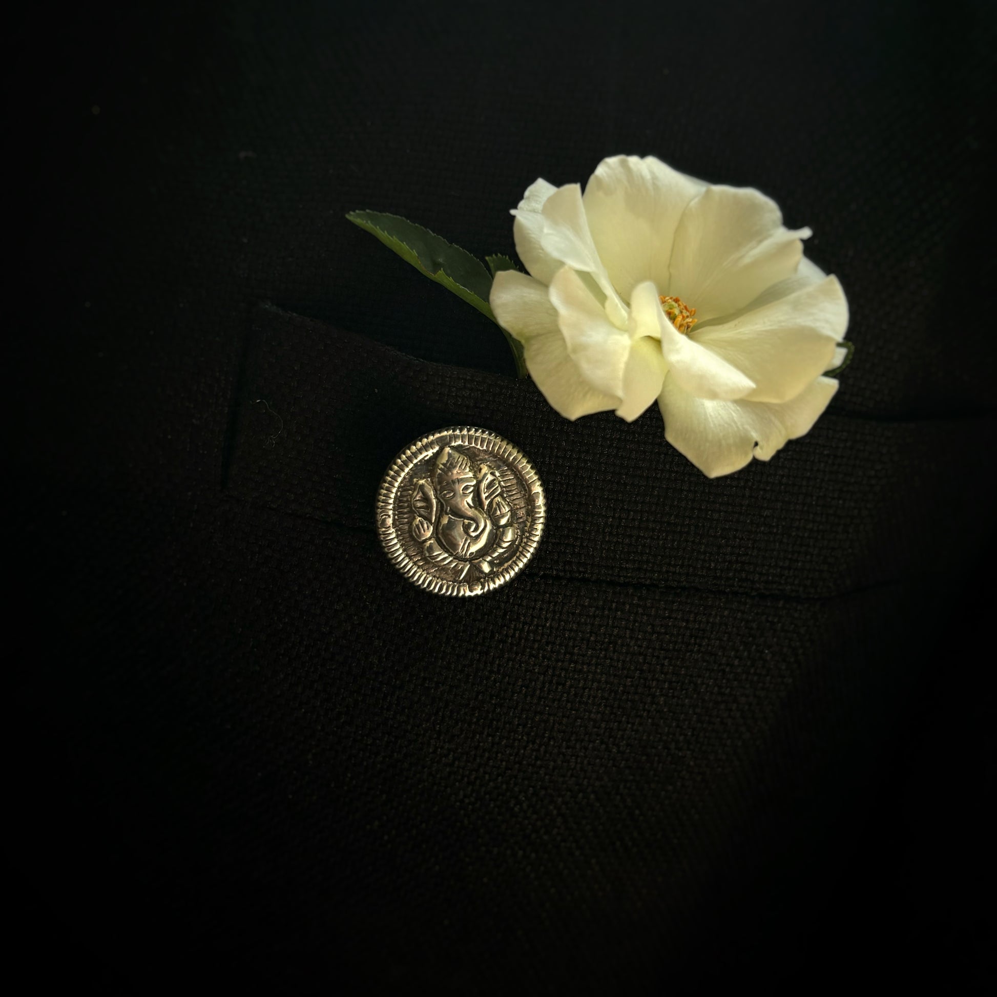 Stylishly wear the blessings of Lord Ganesha with this exquisite silver brooch. It's a stunning statement item with a hint of wisdom and charm that you may wear thanks to its delicate features. It matches beautifully with both traditional and modern attire, making it ideal for any event.