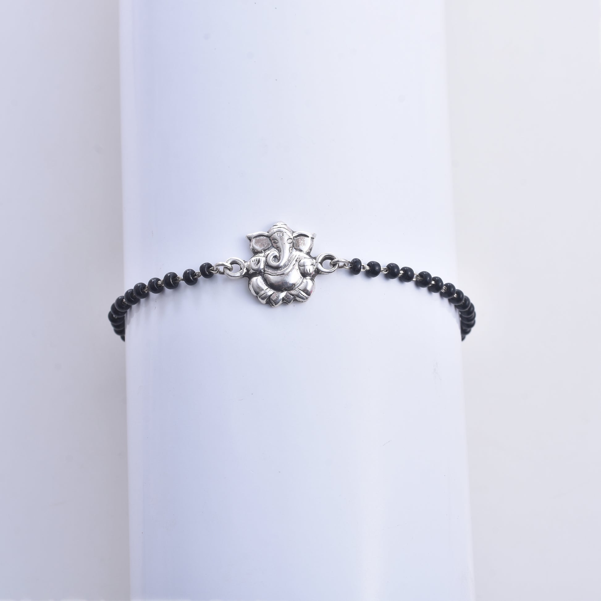 Bring blessings and protection together with our Silver Ganesha Nazariya Bracelet. Crafted from pure 925 sterling silver, it features a finely detailed Lord Ganesha charm along with traditional black beads believed to ward off negativity. A perfect mix of spirituality and style for everyday wear.
