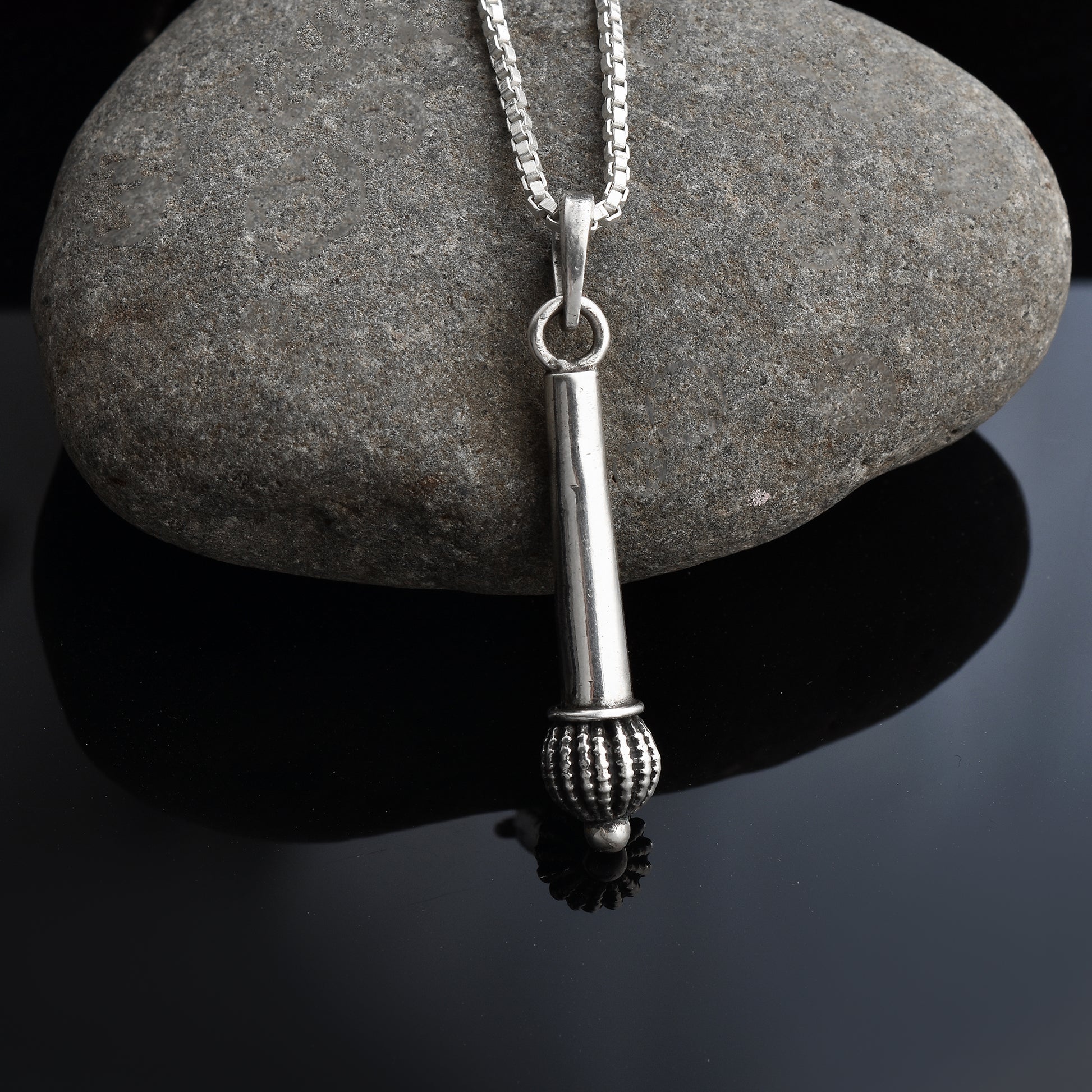 The Hanuman Ji Gada Pendant, which is made of pure silver, represents bravery, strength, and dedication. The Gada, Lord Hanuman's powerful weapon, served as inspiration for this symbol of strength and protection. great for everyday use or as a considerate gift, this piece is great for people who are looking for inner strength and divine blessings.