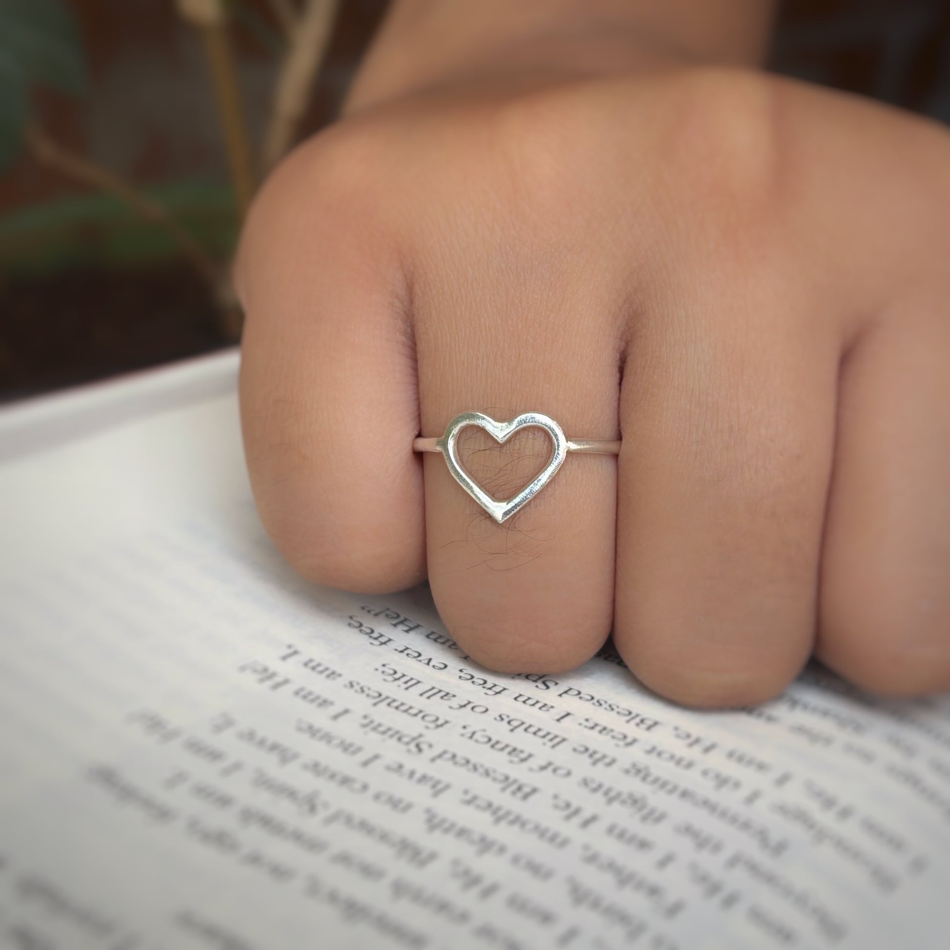Love and connection are symbolized by our silver heart ring. This lovely ring, which is made of pure silver, has a sleek heart shape that gives it a timeless yet contemporary appearance. Give it to a special someone or wear it as a daily reminder of love.