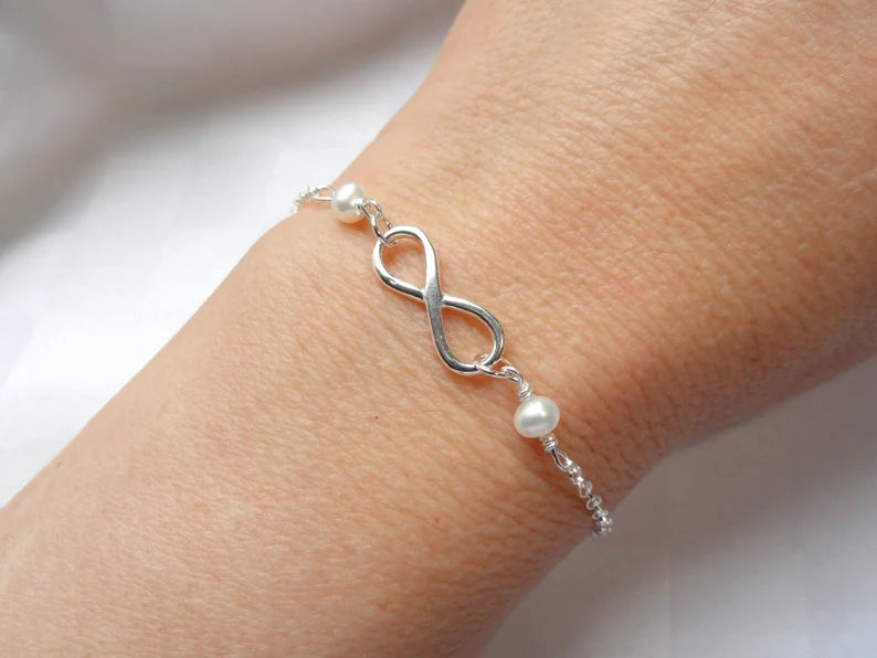 Silver infinity pearl bracelet
