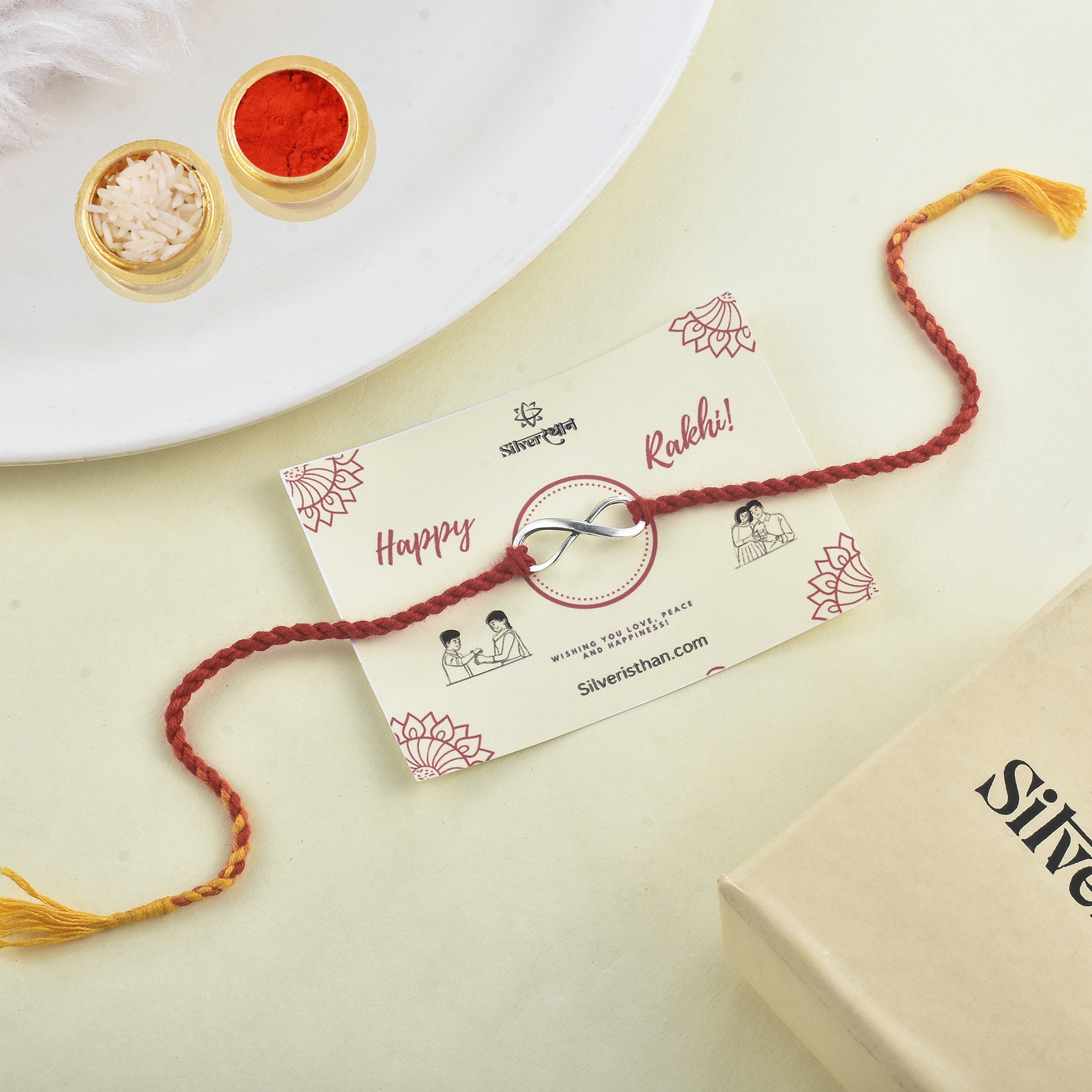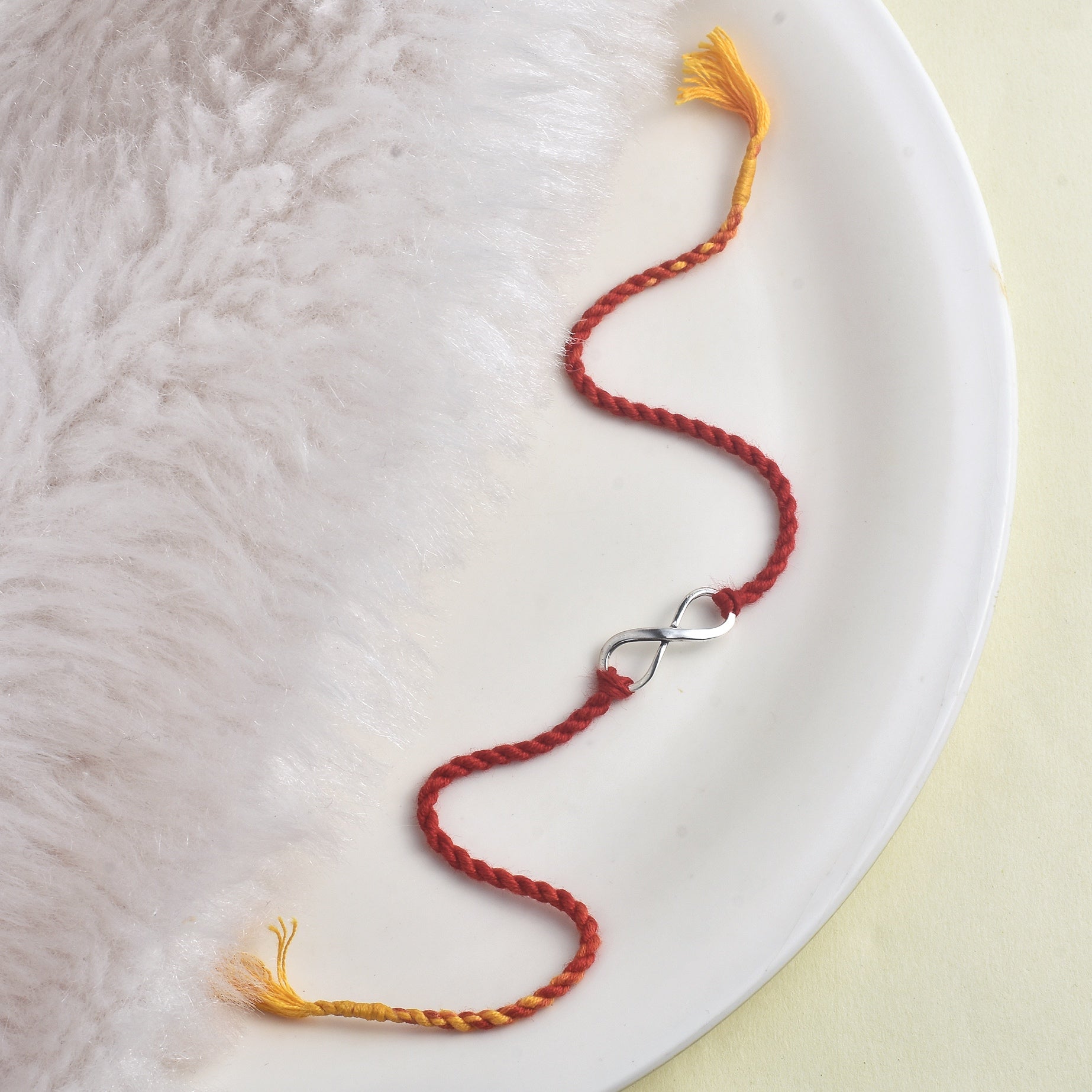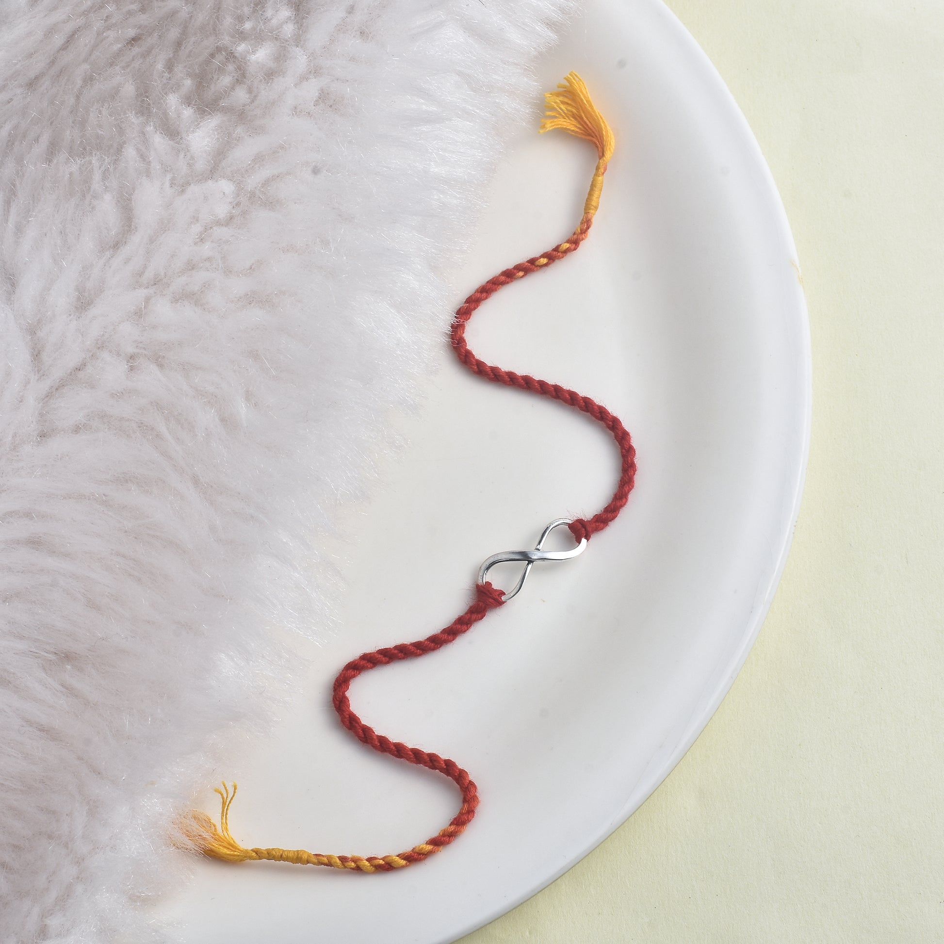 Using the Silver Infinity Rakhi, you may mark your eternal connection. The exquisitely designed infinity symbol in pure silver on this classy Rakhi symbolizes an unending bond and love. It's a great method to express your brother how much he means to you and makes Raksha Bandhan genuinely memorable. It's robust and lightweight.