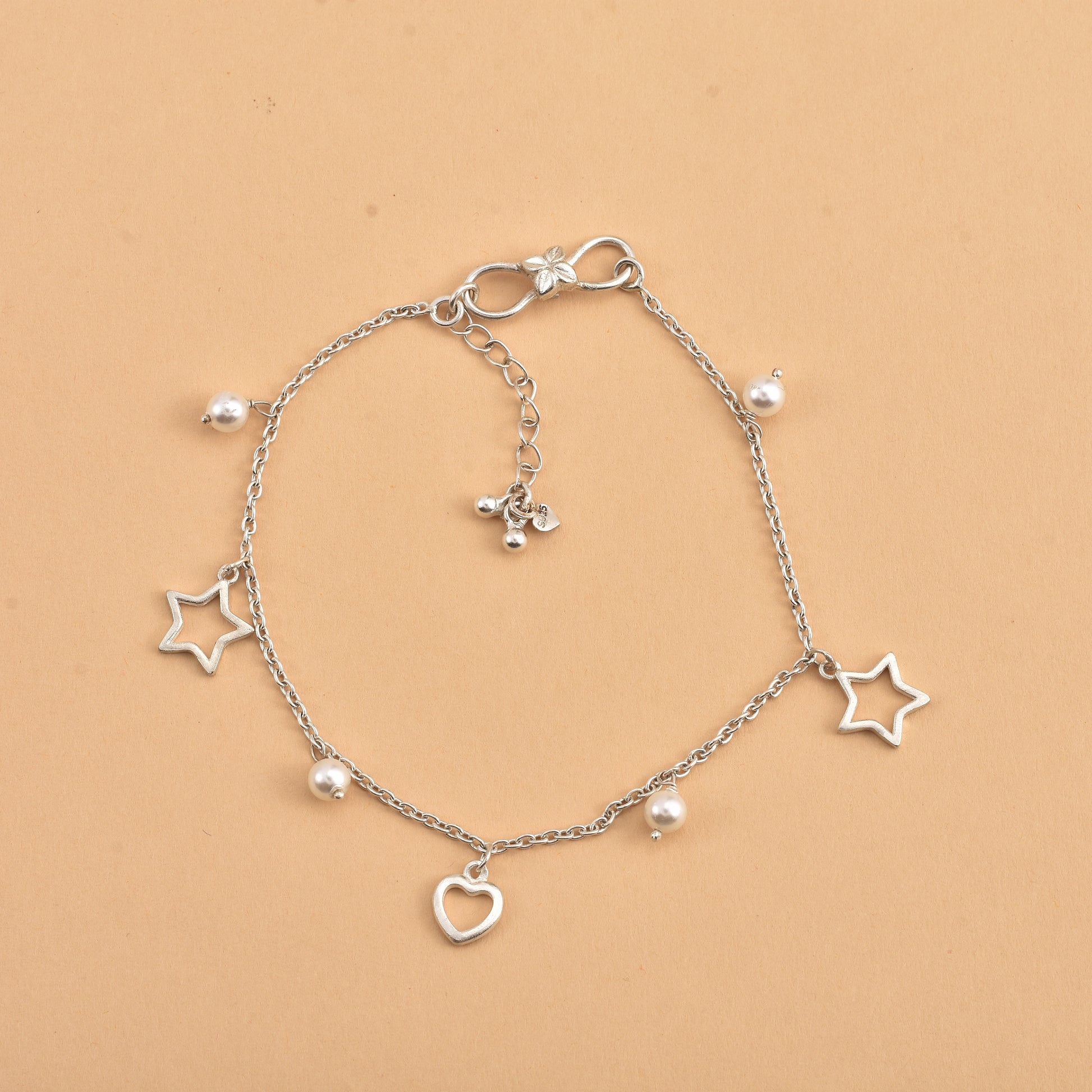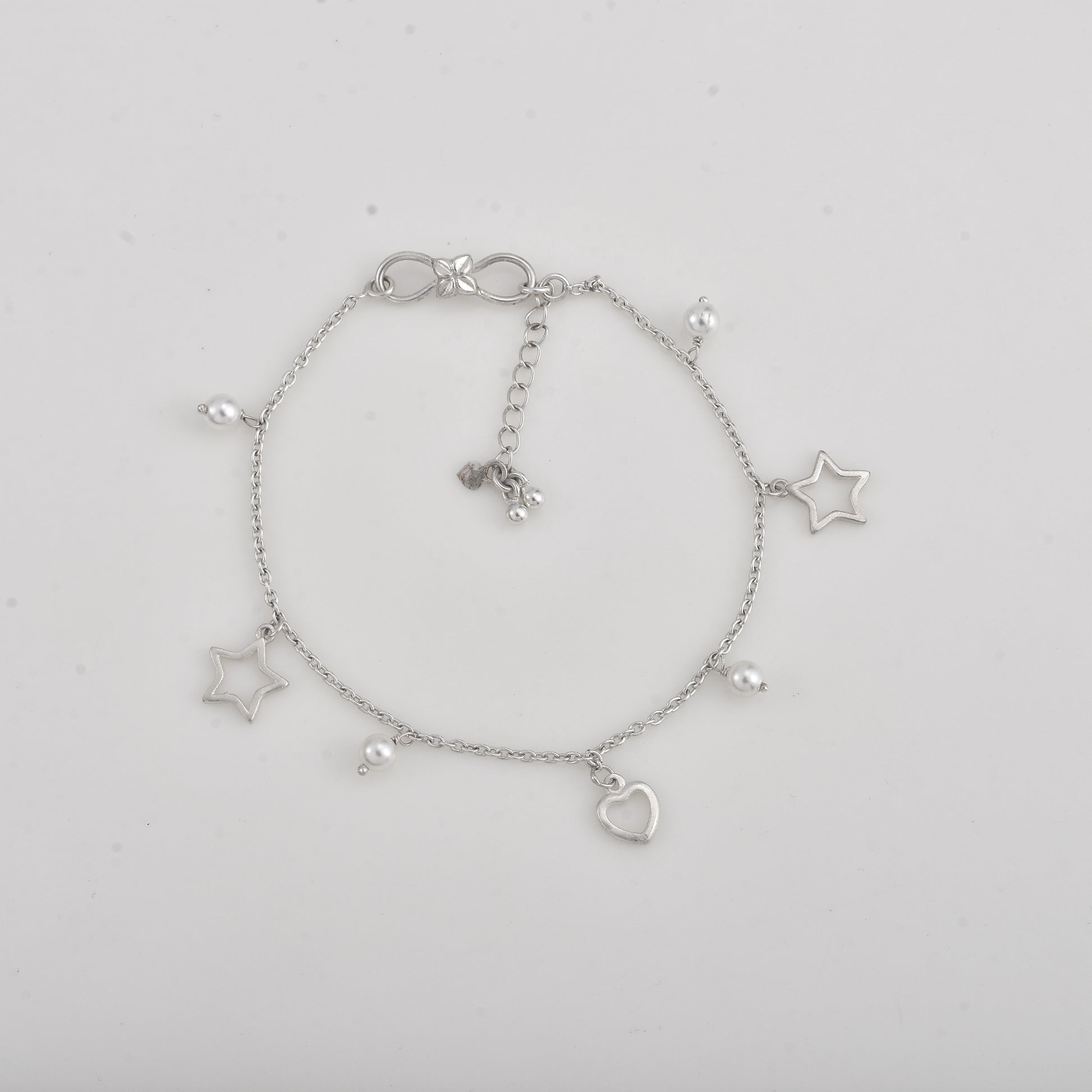 Silver Love Star Pearl Drop Anklet