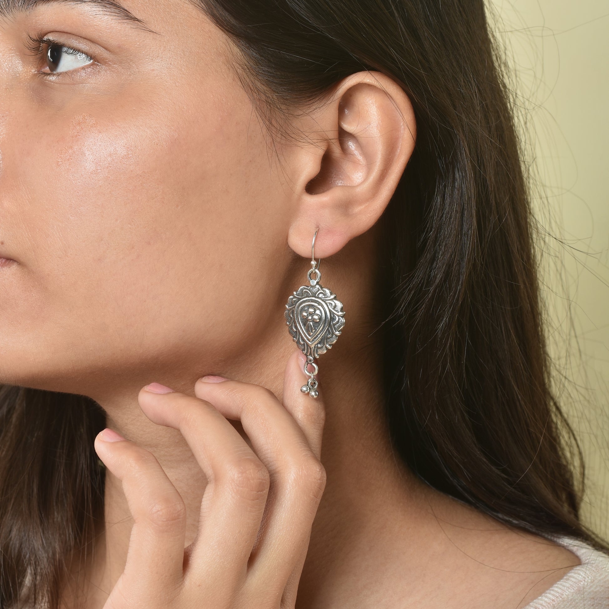 Add royal charm to your look with our handmade Silver Maharani Dangles Earrings. Crafted with care by skilled artisans, these earrings blend tradition with elegance. Perfect for festive occasions or special events. Made in Pure Silver and hallmarked for authenticity and quality.