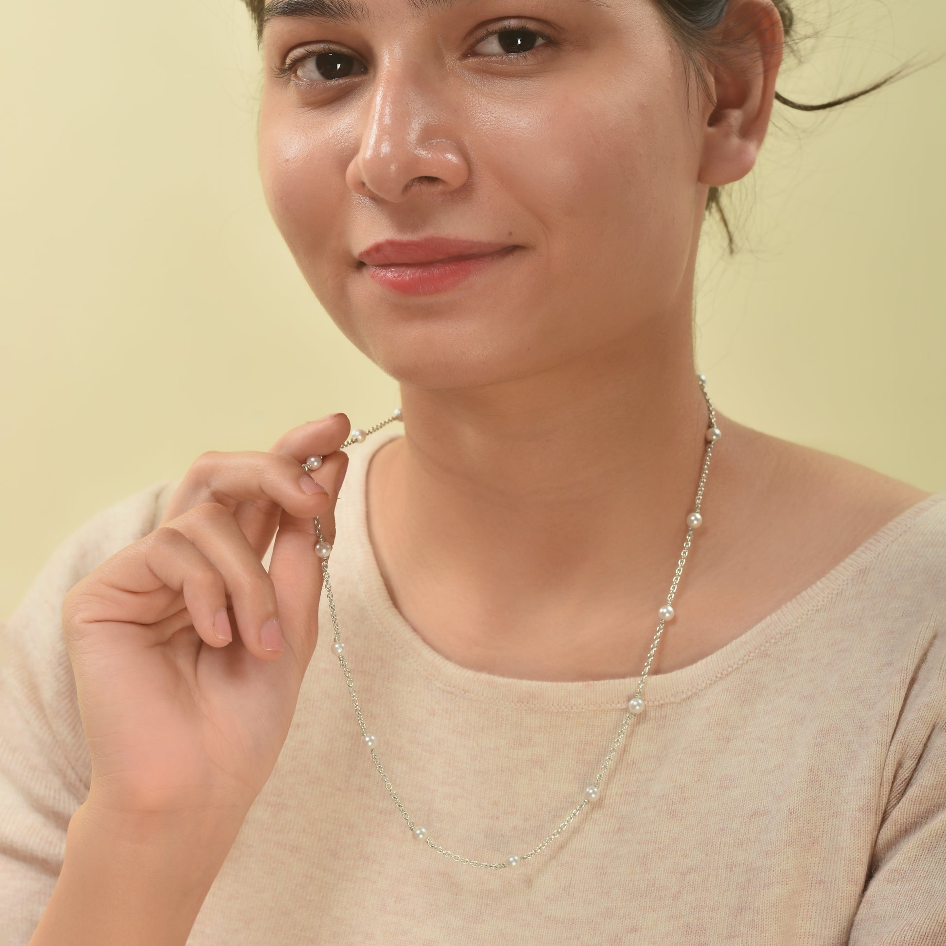 Made with pure 925 sterling silver, the Silver Pearl Drop Neck Chain is a symbol of effortless beauty. The single pearl drop adds a touch of sophistication, making it ideal for casual, festive, or formal looks. A timeless piece you’ll love to wear.