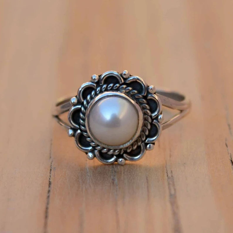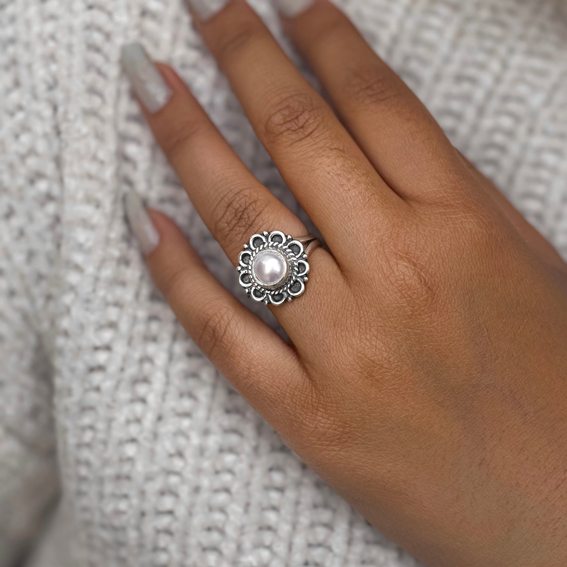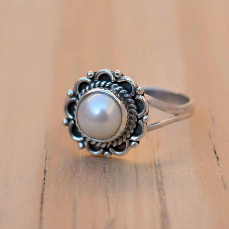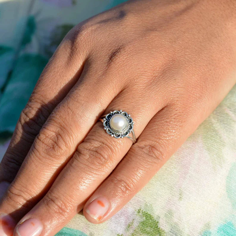 Adorn your finger with our Silver Pearl Flower Ring. The silver petals cradle a radiant pearl, adding a touch of grace to every moment."Featuring a lustrous pearl at its center, this ring is a graceful accessory for any occasion."