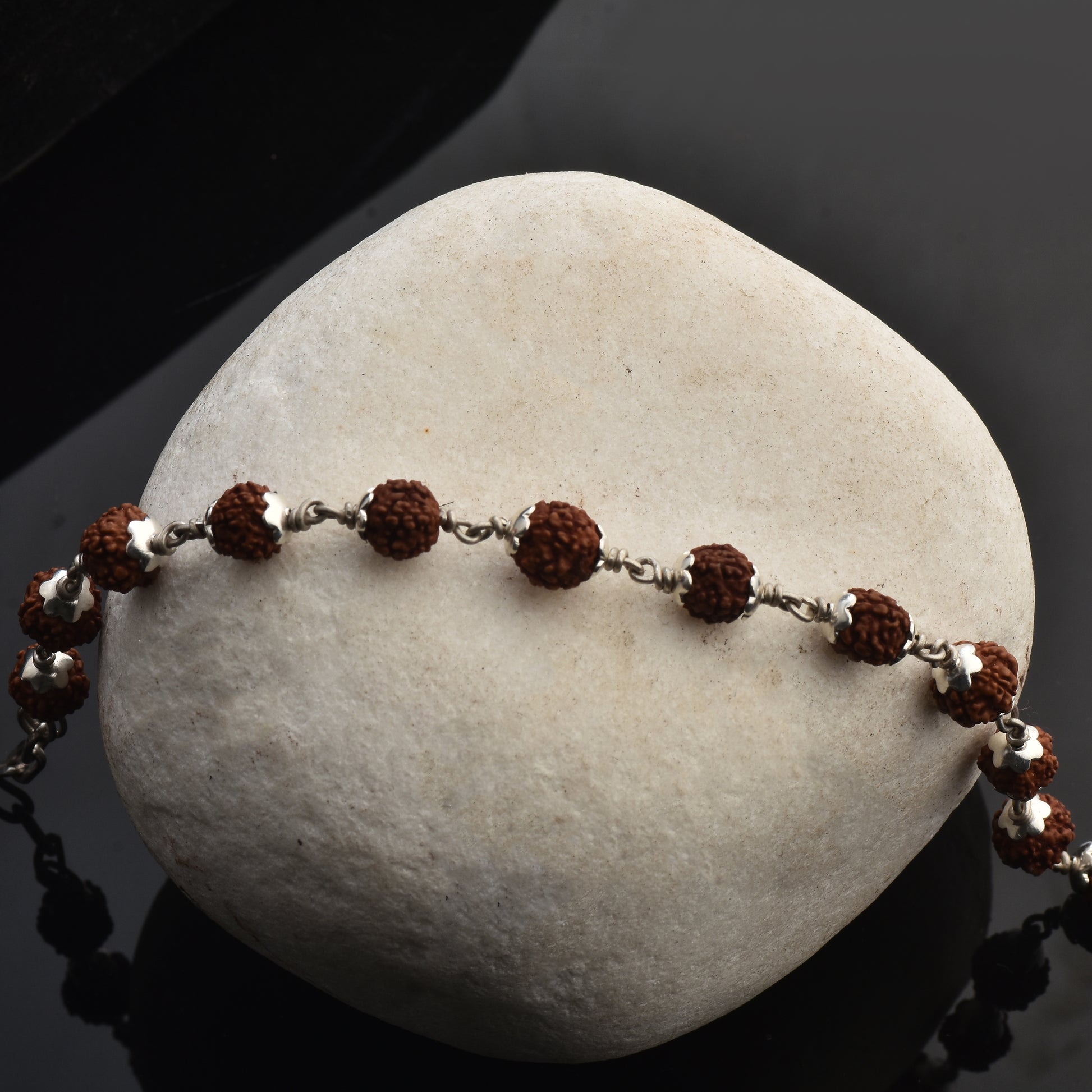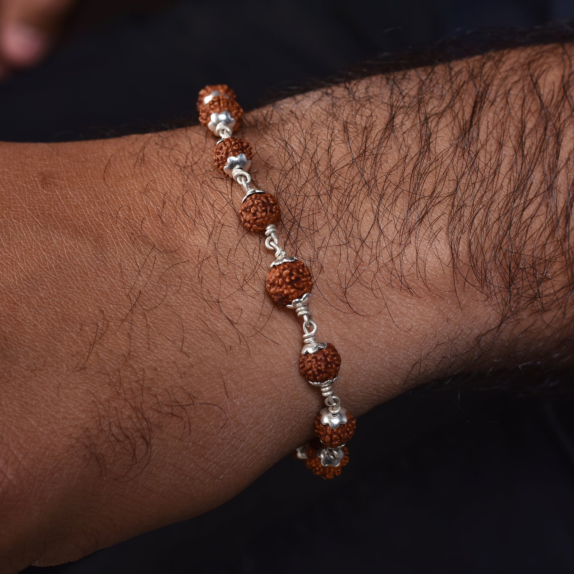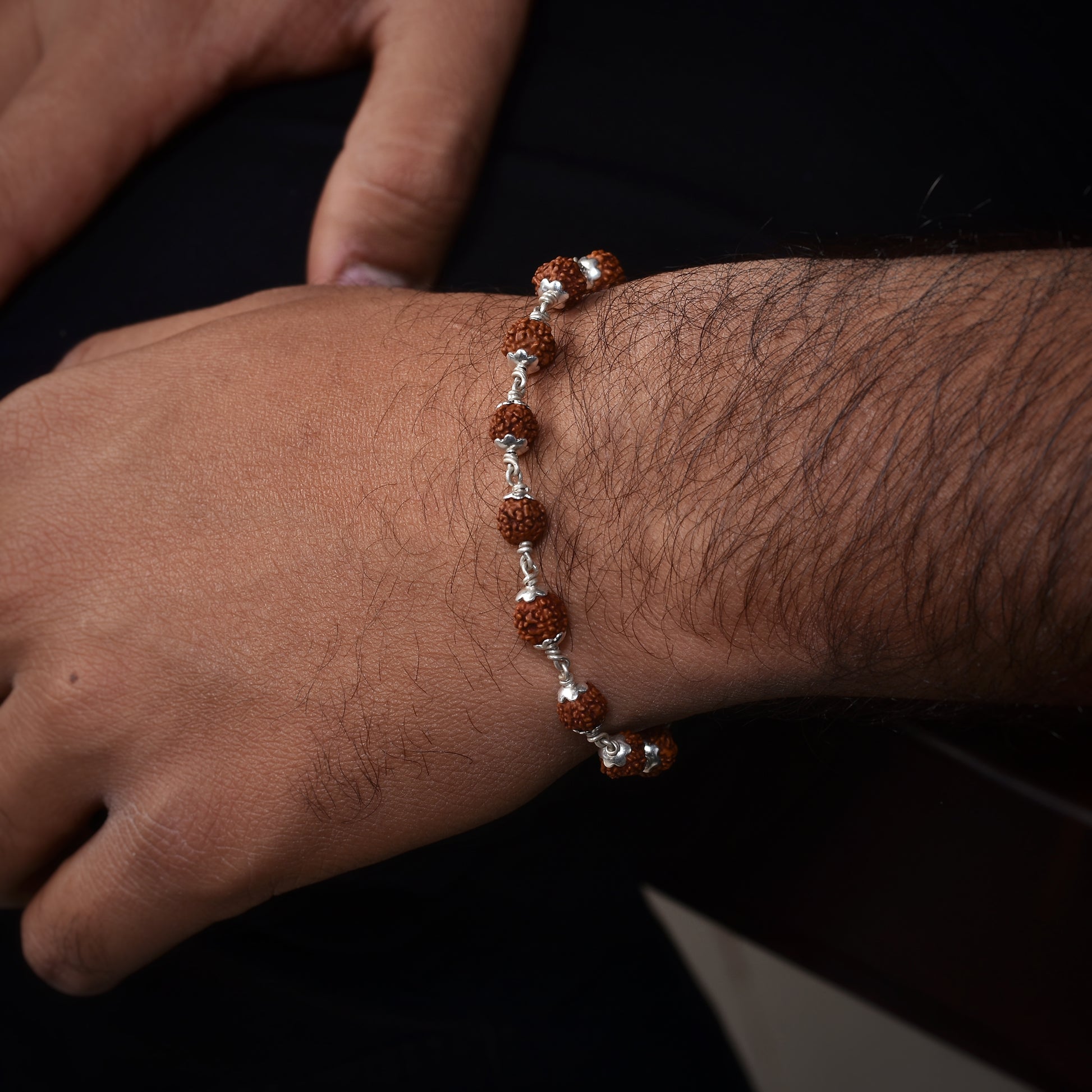 Crafted with pure silver and authentic Rudraksha beads, the Silver Rudraksh Kanthi Bracelet symbolizes spiritual energy, peace, and protection. Known for its calming properties, it promotes inner strength and positivity. A perfect blend of tradition and style, ideal for daily wear or as a meaningful gift.