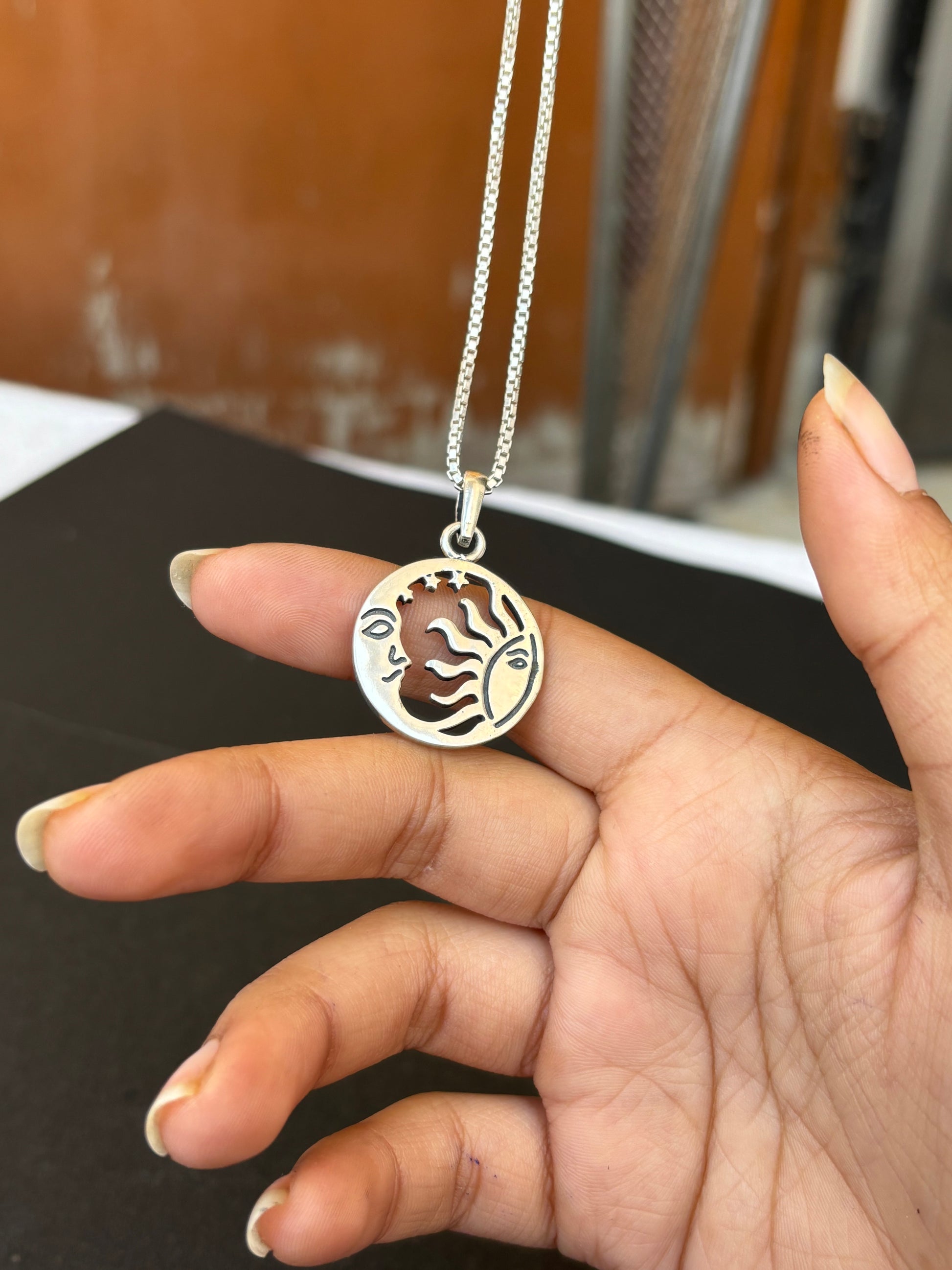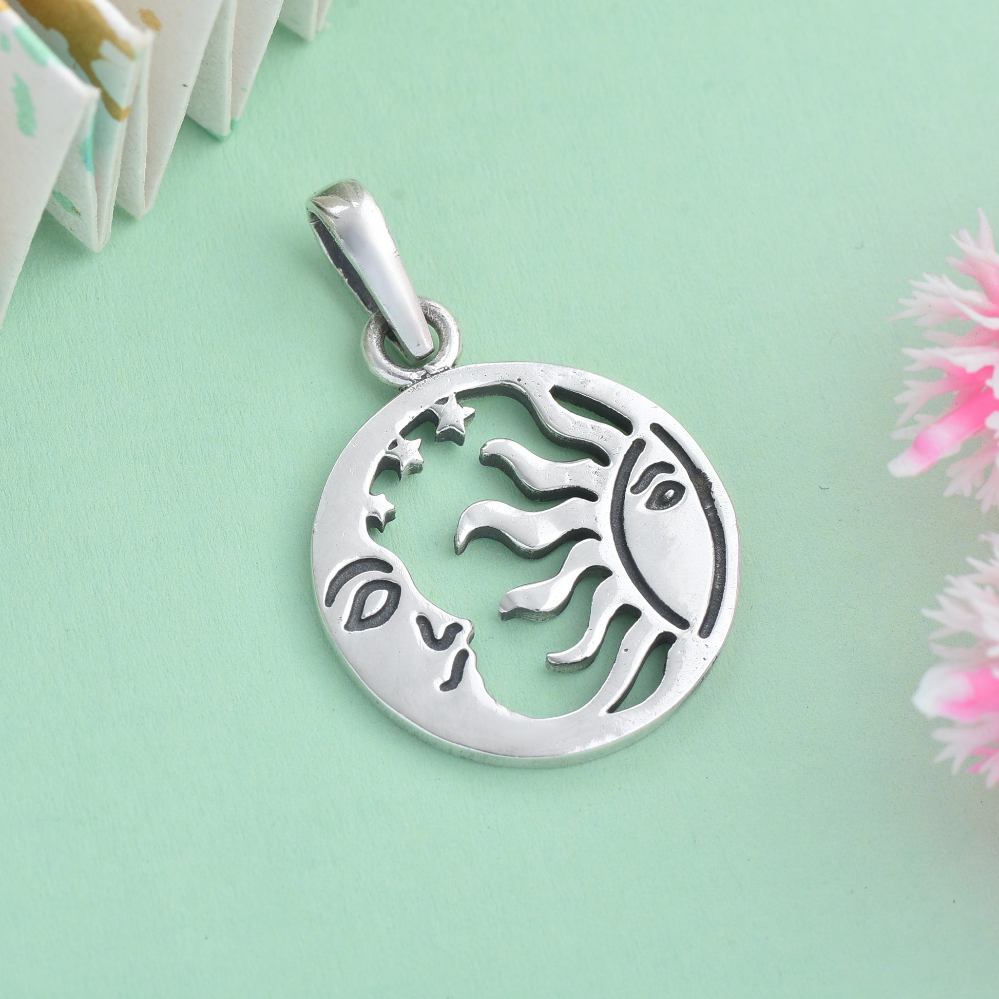 Silver sun and moon pendant( Without chain)