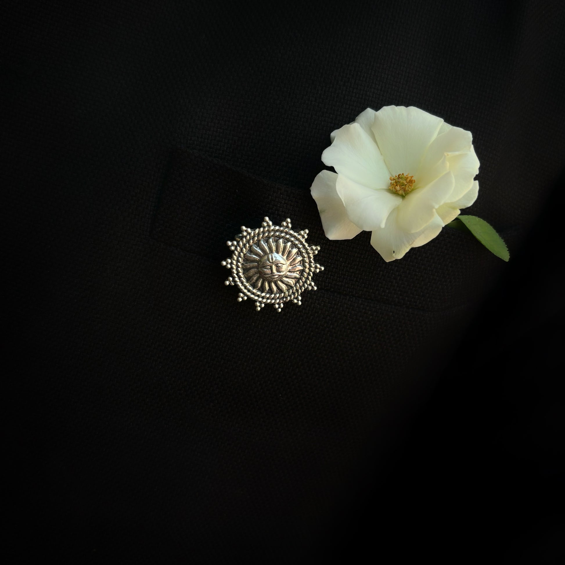 Brighten up your look with this beautiful silver Suraj brooch. Inspired by the sun, it symbolizes energy and vitality, adding a radiant touch to any outfit. Perfect for everyday wear or special occasions, it’s a stylish way to carry positivity with you.