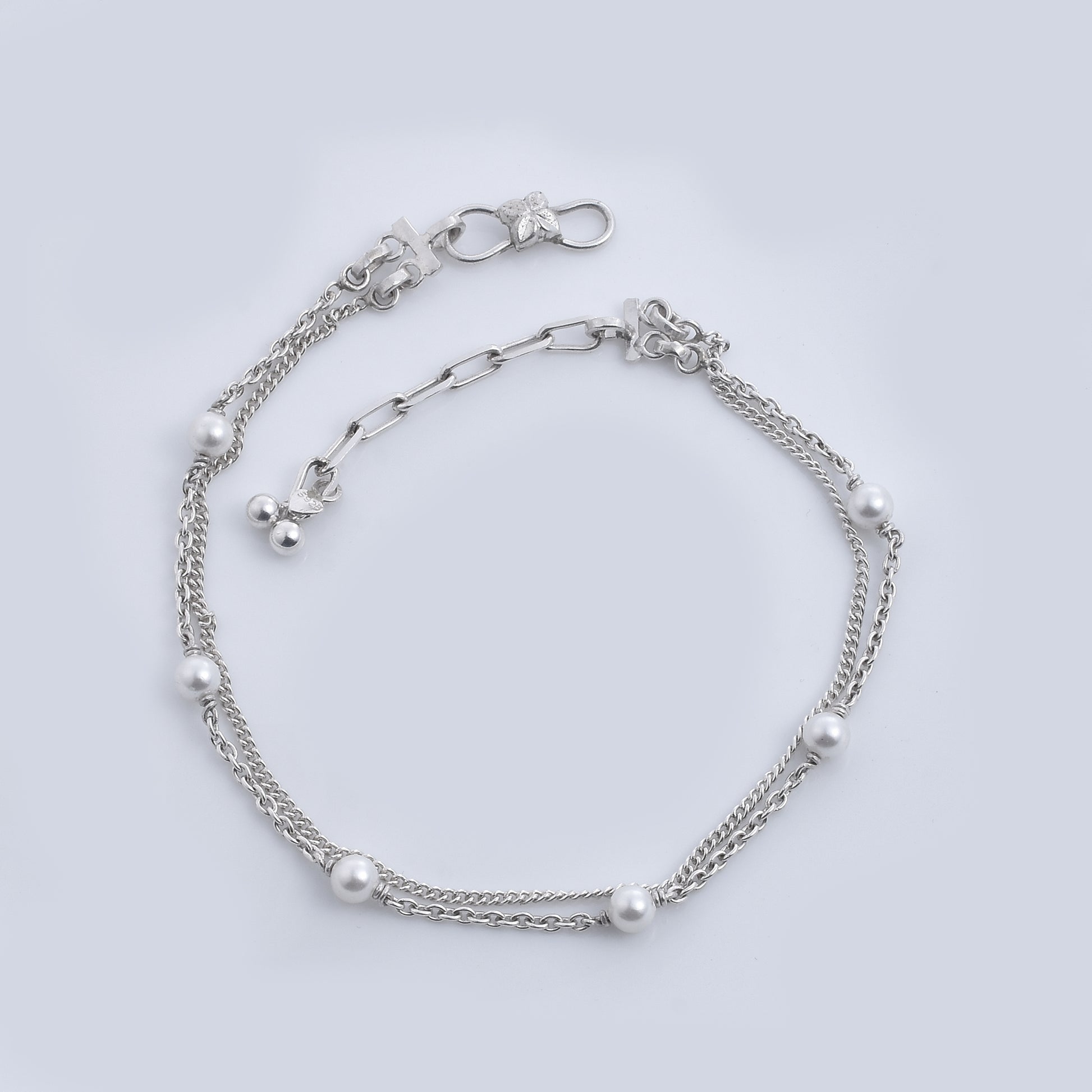 Silver Twin Layered Pearl Anklet