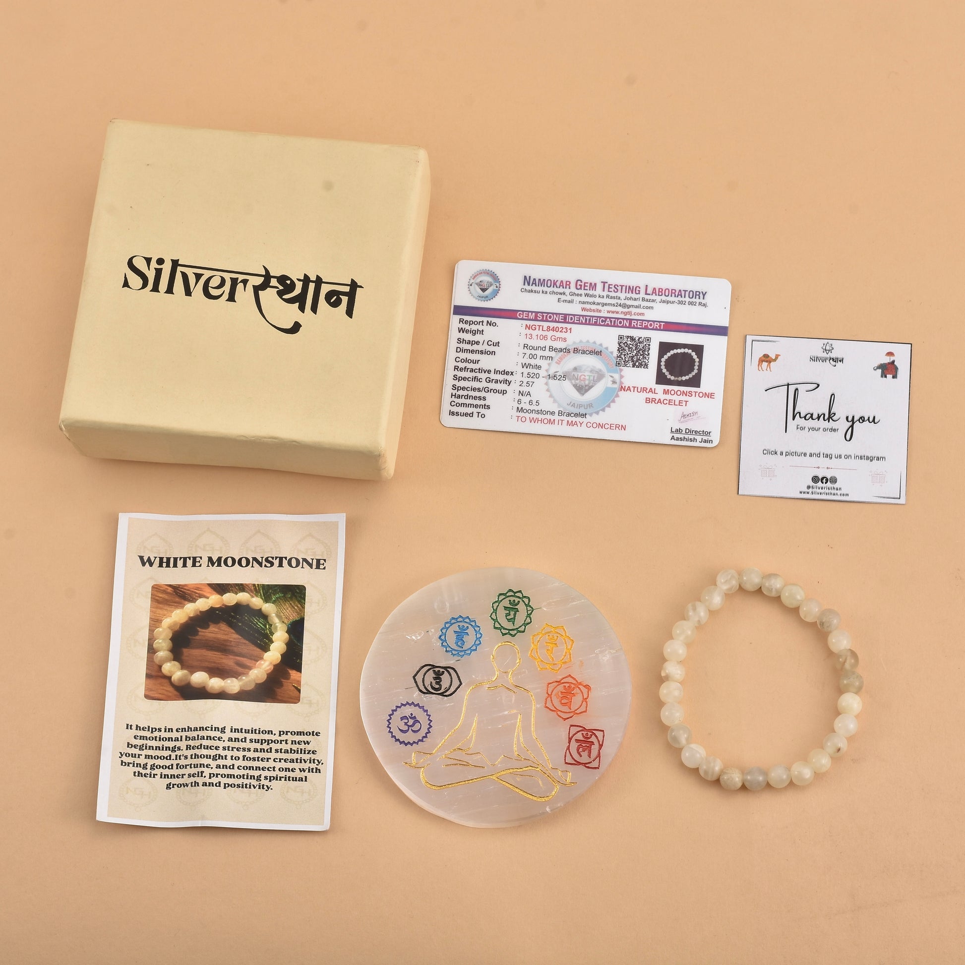 The White Moonstone Bracelet from Silveristhan is crafted to bring calmness, emotional balance, and gentle healing. Moonstone is known for enhancing intuition, reducing stress, and bringing inner peace. Its soft white glow adds a soothing and elegant touch to your everyday look. Perfect for anyone seeking harmony, positive energy, and a beautiful natural accessory.