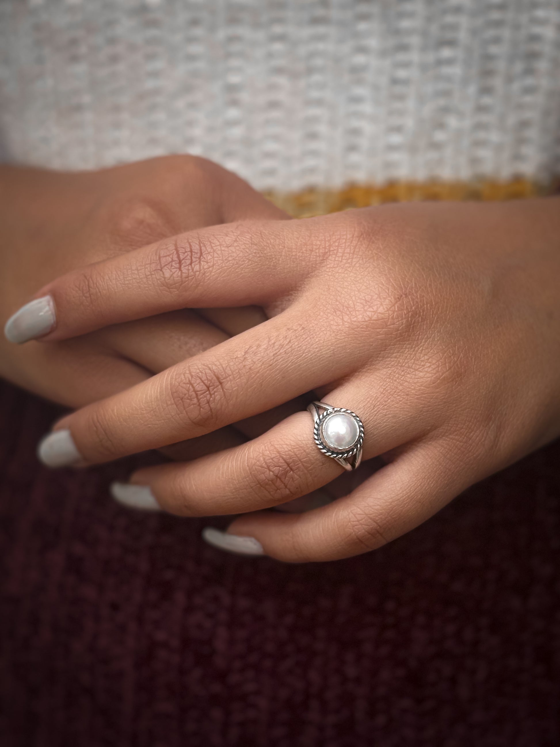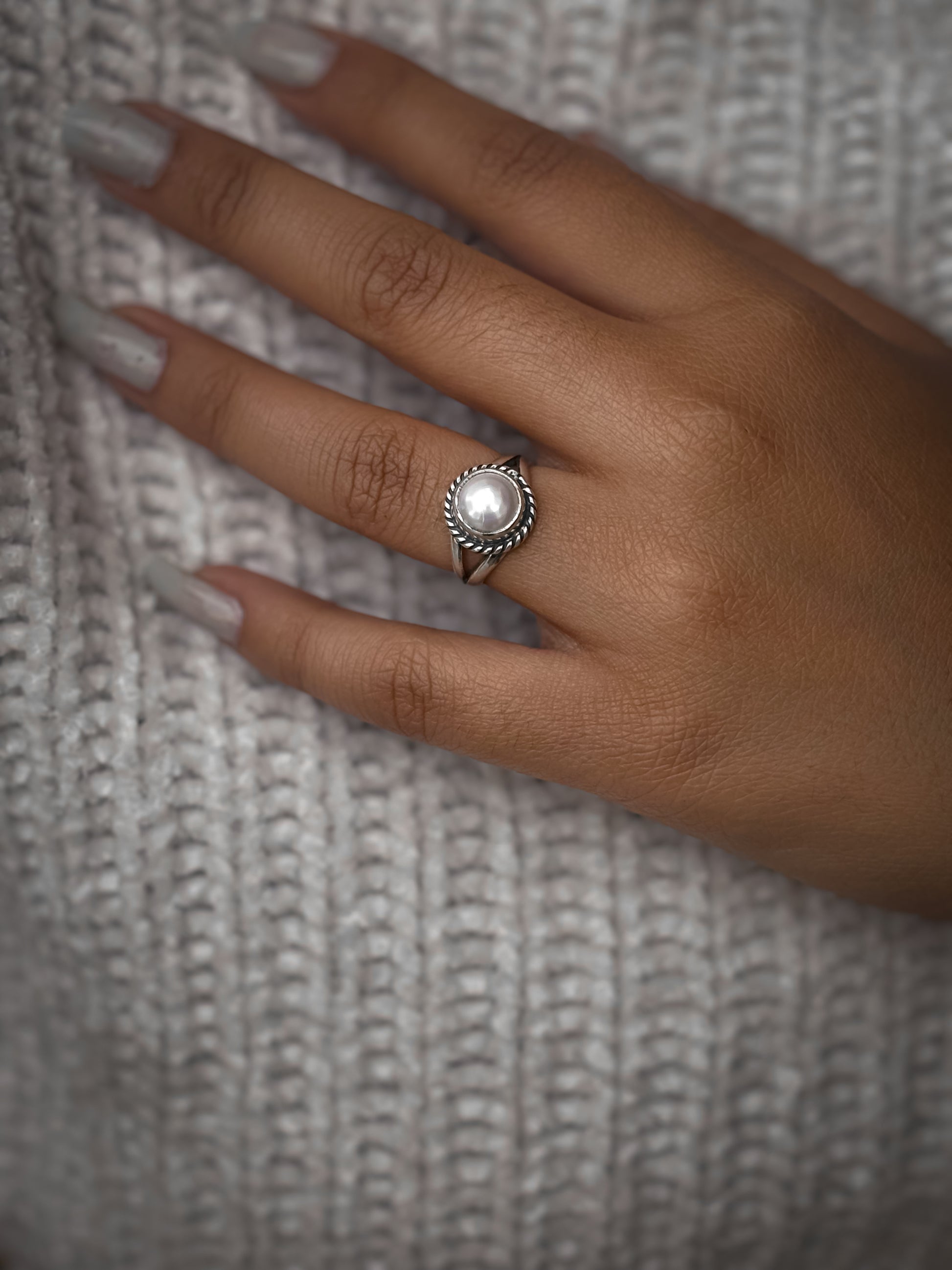 White Pearl Swirl Ring